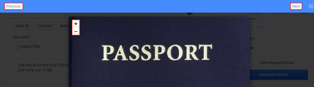 Improvements to File Preview: When previewing a file via the magnifying glass icon, under the 'Files' tab of an applicant profile, it is now possible to view multiple files without closing the window by clicking Previous or Next in the top corners. You can also use the left and right arrow keys on your keyboard for convenience. For image files (JPG or PNG), zoom buttons have also been added to the image, making it easier to quickly view and navigate between files.